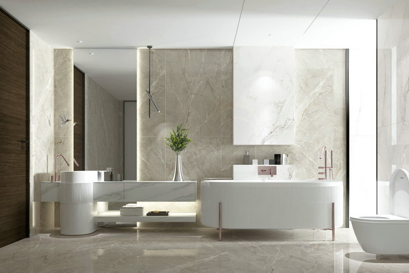 產品設計源自意大利天然大理石,淺灰色如隱藏著一股神秘的力量,肆意的肌理流動,呈現出自然獨特的層次感,通過光線下明暗之間的變幻,呈現出自然之美。