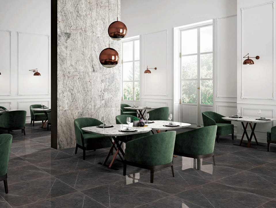 通體黑色賦予了諾里斯克大理石一種古老的神秘感,白色的脈絡如同光線穿透其中,穿越千萬年的光陰,揭開皇室絕代的高貴與典雅,成就現代家居的成熟氣質。