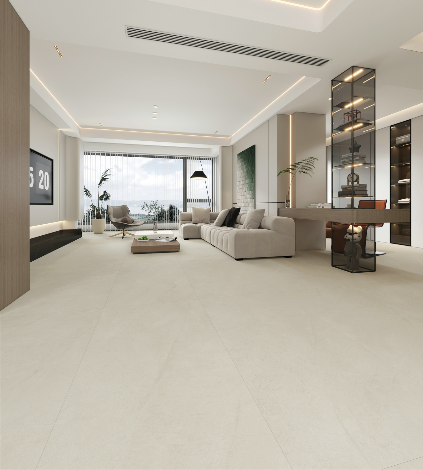 煙波浩渺,水天一色,春水青山,風(fēng)景如畫。極淺的紋理在板面鋪開,像江面上的煙霧彌漫開來,浩浩湯湯,亦真亦幻。暖色系營(yíng)造閑適自在的生活意境,讓空間更有情感格調(diào)。